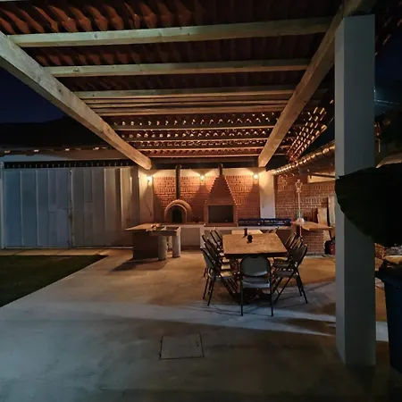 The apartment offers self-catering amenities, such as a shared kitchen, and an outdoor dining area for guests' convenience. The accommodation opens onto a patio.